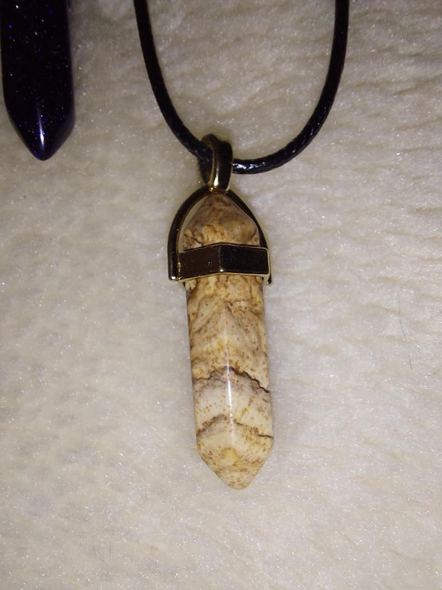 Picture jasper point pendant with cord necklace.