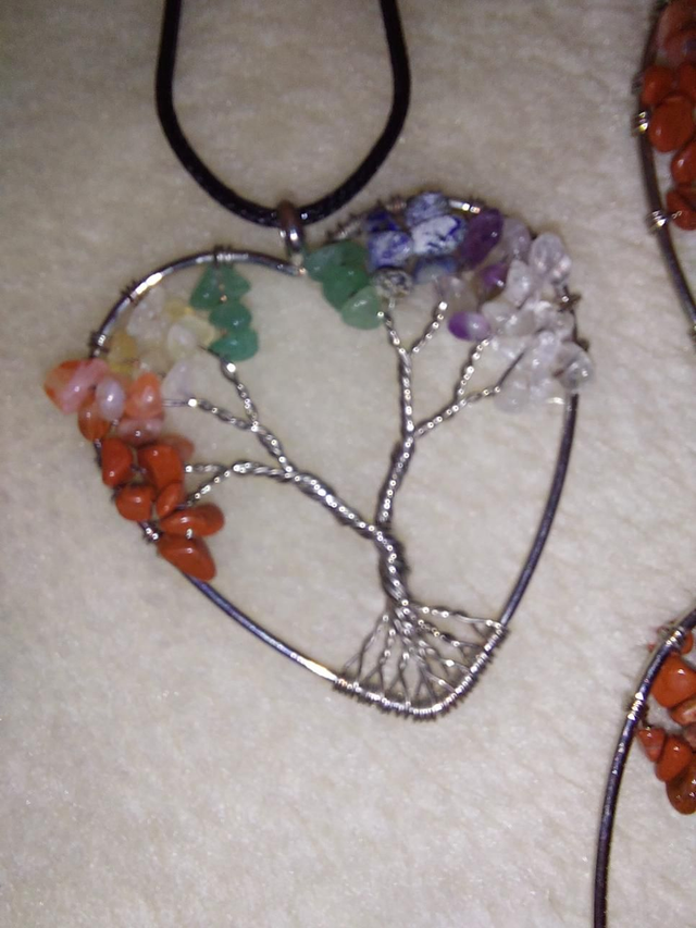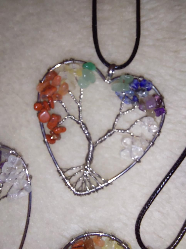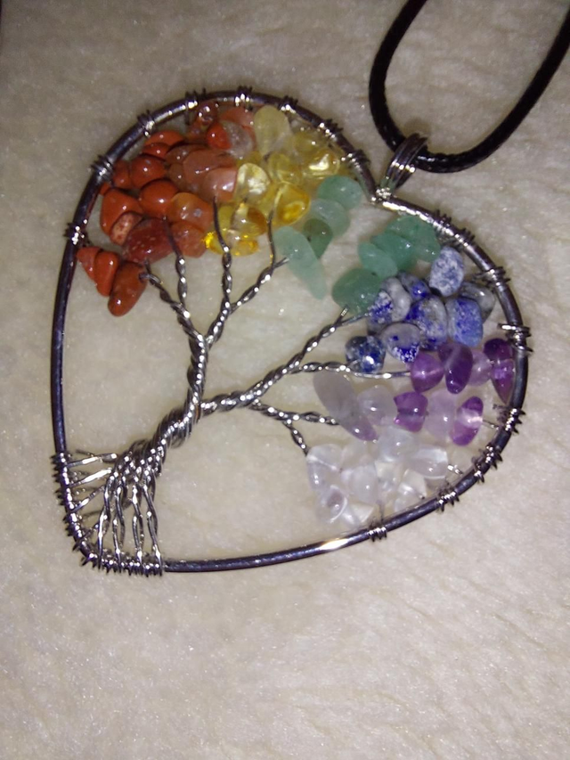 Tree of life, chakra heart shape pendant, necklace.
